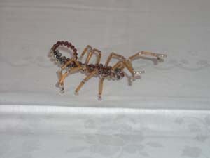 Dieser Skorpion stammt aus einem Perlentier-Swap der Perlengruppe " Glasperlenhobby " zu finden bei Yahoo. Der Skorpion wurde von Carmen gefertigt und ist bei mir eingezogen. |