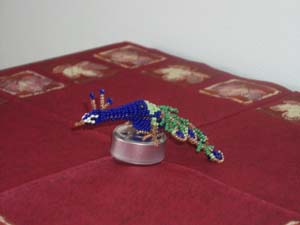 von Ingrid Moras. Ein etwas schwieriges Tier, weil die 8 Schwanzfedern eingearbeitet werden müssen.